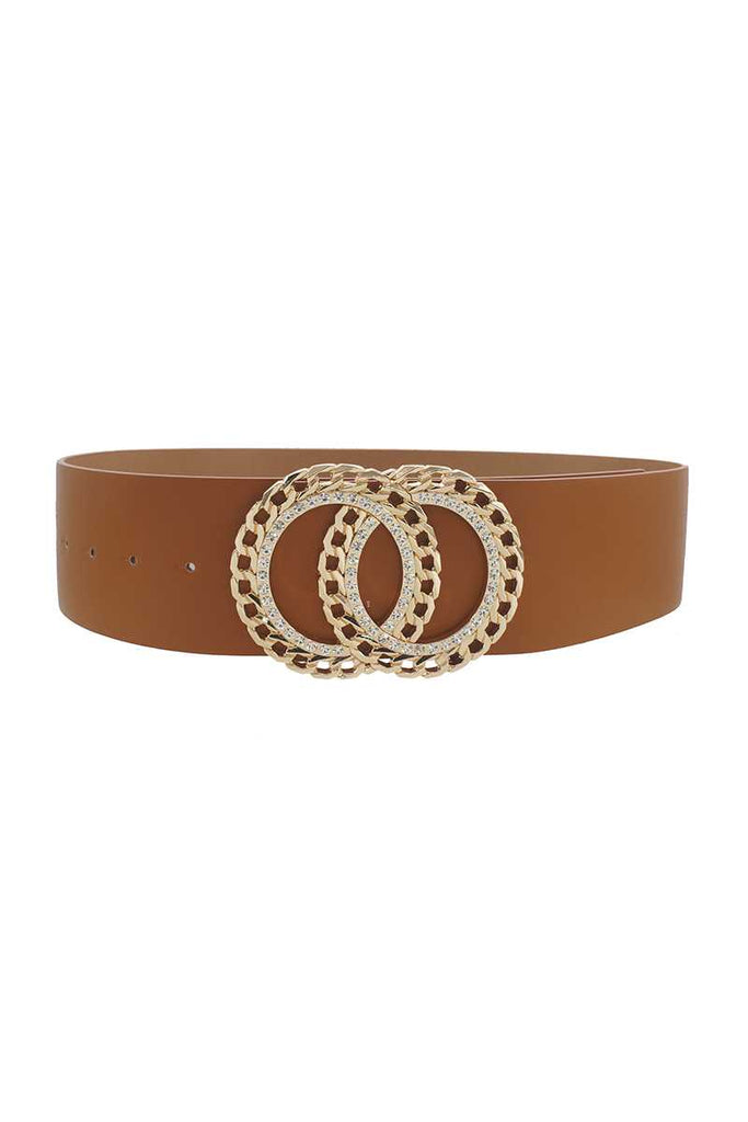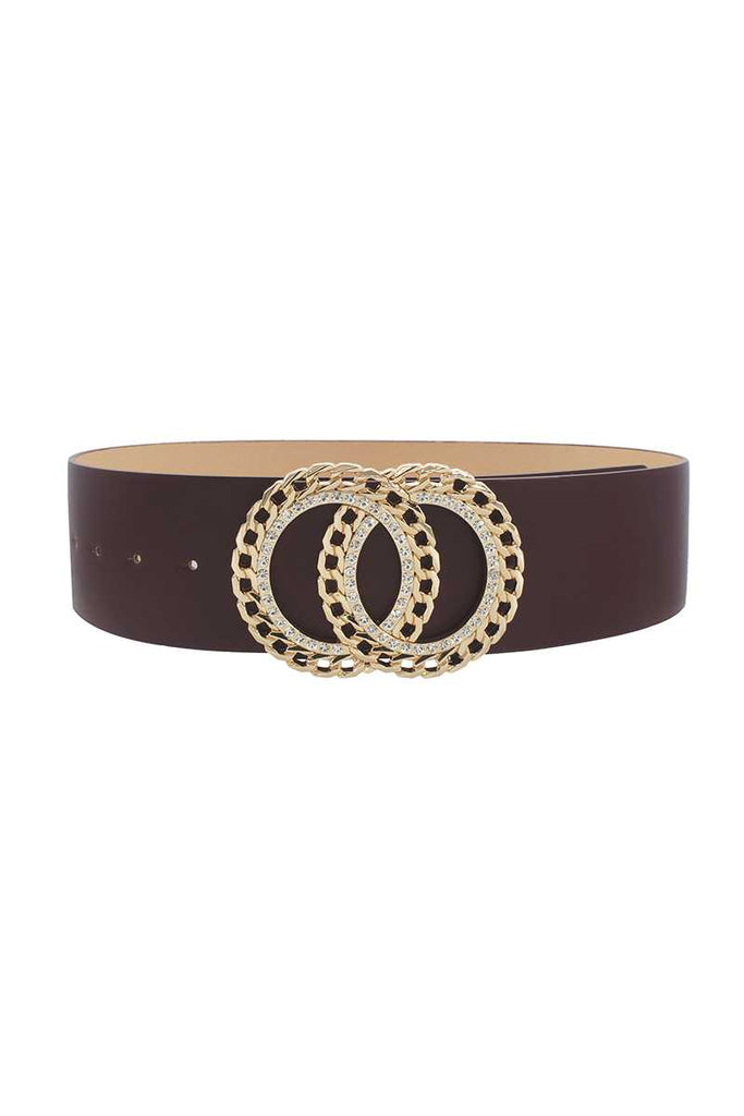 Elevate your outfit with our Double Circle Chain and Rhinestone Trim Design Belt, a statement accessory that adds a touch of glamour to any look. Available in a variety of stylish colors, including Black, Cognac, Red, Mustard, Tan, Teal, and Wine, this belt is designed to enhance your style and make a lasting impression.