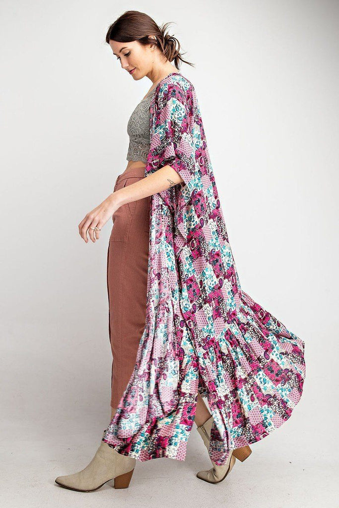 Rayon Challis Ruffle Bottom Maxi Open Kimono