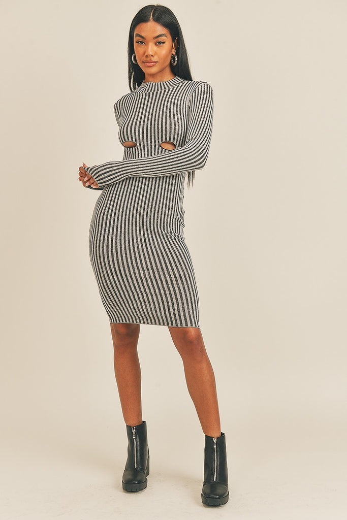 Introducing our Long Sleeve Stripe Print Midi Dress, a versatile and chic addition to your wardrobe that effortlessly combines comfort and style. This midi dress is designed to enhance your elegance while providing a timeless and on-trend look.