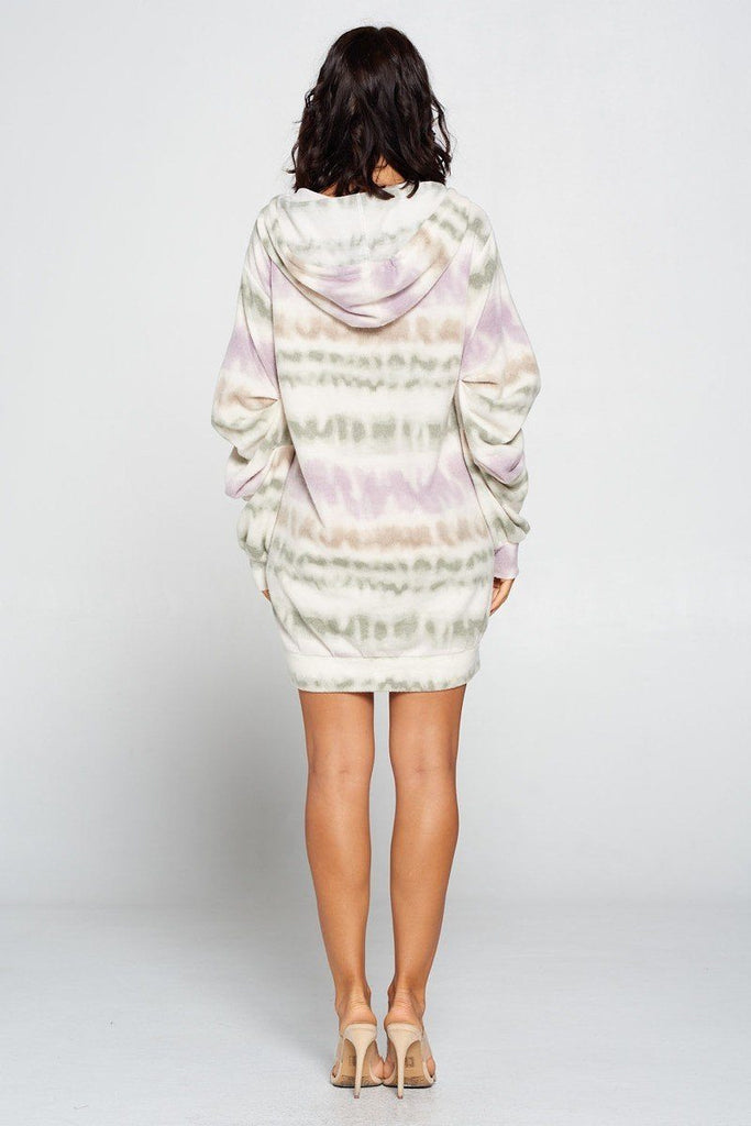 Made In U.S.A S.M.L TERRY BRUSHED PRINT SWEATER DRESS 55% Rayon 40% Polyester 5% Spandex Cream/Olive/Brown/Lavender WIN
