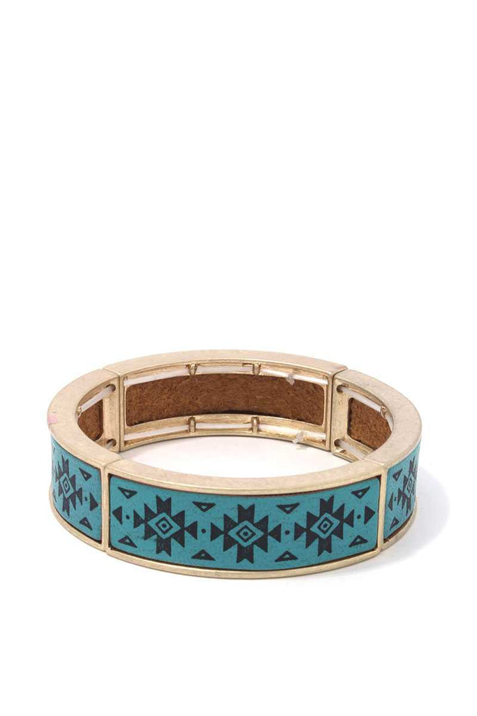 ImportedAZTEC PATTERN METAL STRETCH BRACELETBrown.Beige.Turquoise FBJ