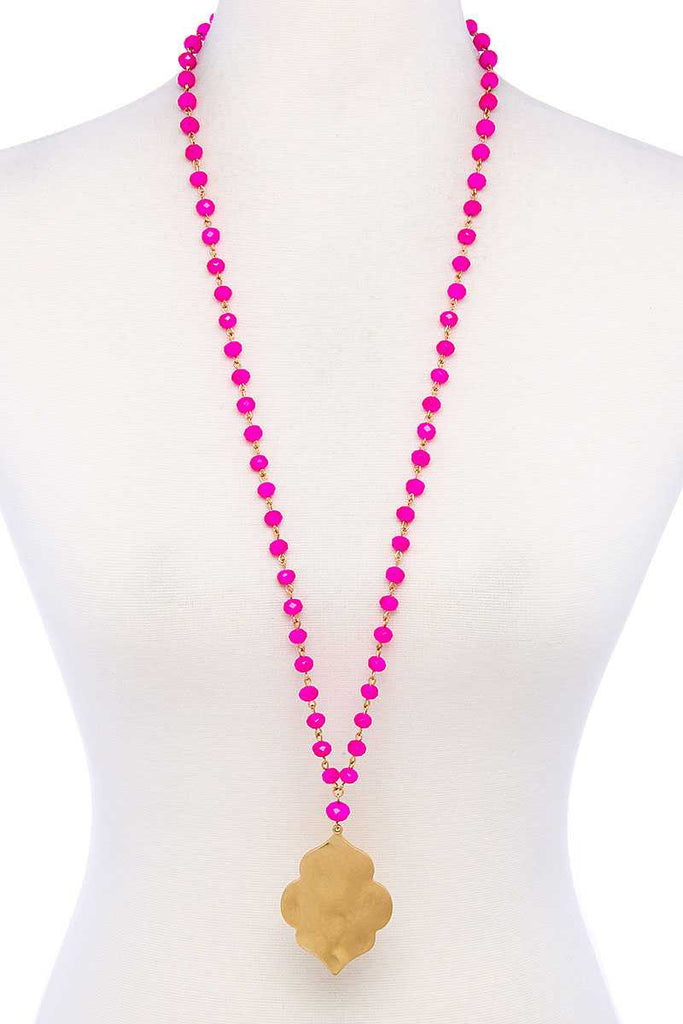 ImportedDESIGNER MULTI BEAD PENDANT NECKLACEBeige.Black.Magenta.Mint.Mustard.natural.Peach.WhiteFBJ