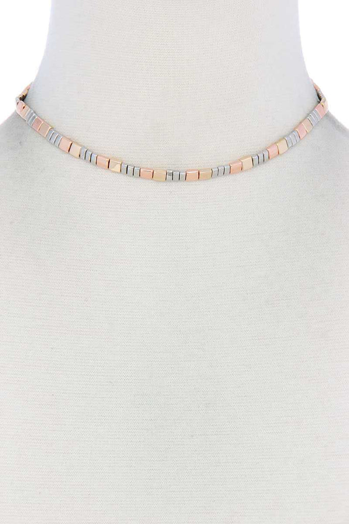 ImportedMETAL BLOCK NECKLACEGold.Multi.Gold/Rhodium FBJ