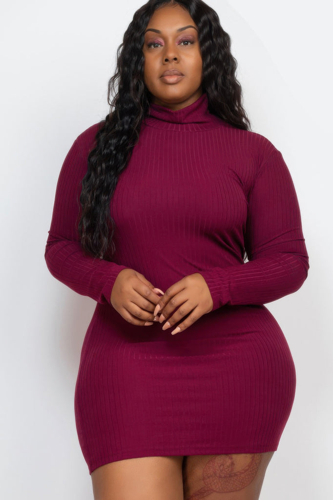 Elevate your wardrobe with the Plus Size Ribbed Long Sleeve Mock Neck Mini Bodycon Dress and embrace chic style and comfort!