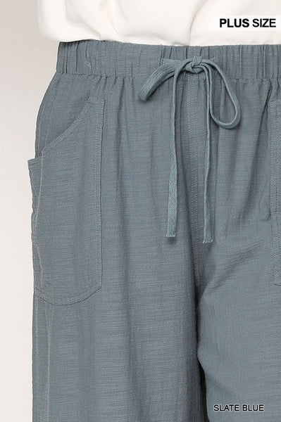Upgrade your wardrobe with our Frayed Wide Leg Pants with Pockets in Slate Blue. Add them to your cart now and experience the perfect blend of fashion and comfort!