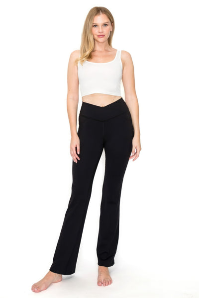 Perfect for various yoga practices, our V-Waist Mini Flare Yoga Pants in Black not only provide comfort and support but also add a touch of style to your active lifestyle.