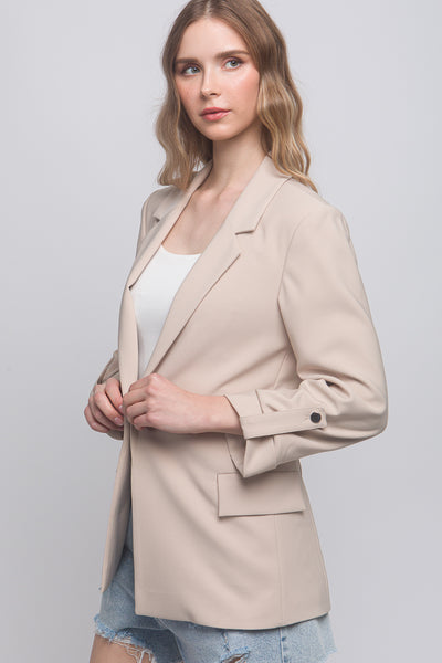 Woven Solid 3/4 Sleeve Blazer