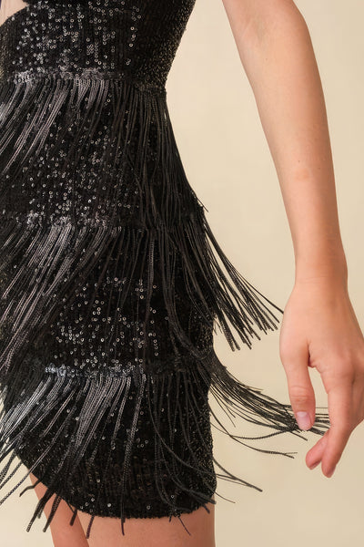 Experience the perfect blend of confidence and glamour with our Fringe Sequin Bra Top Bodycon Party Dress, where the fringe detailing effortlessly adds a playful touch.