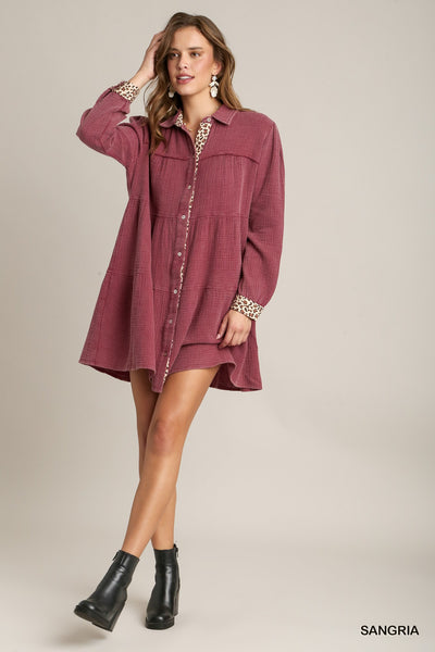 Get ready to turn heads and make a statement with our Mineral Wash Cotton Gauze Tiered Dress in Sangria. Add it to your cart now and experience the perfect blend of fashion and comfort!